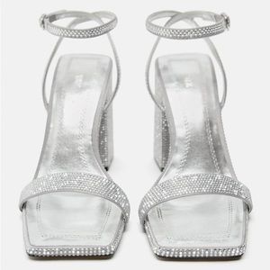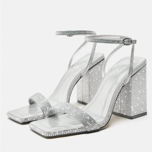 Zara Silver Block Heel Rhinestone Sandals