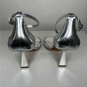 Zara Silver Metallic Heel Strap Sandals Sz 39