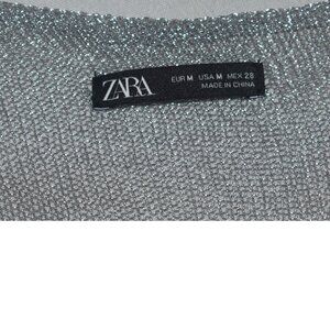 Zara Silver Metallic Knit Crochet Caftan Dress Fringe M
