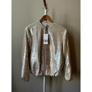 Zara Silver Sequin Jacket, Size Small (New with Tags)