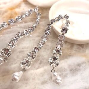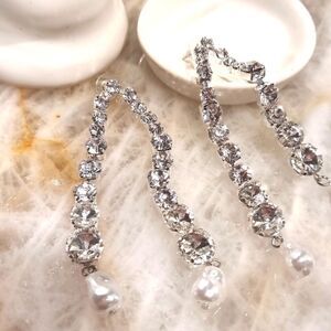 Elegant drop earrings with silver accents and pearl details. Perfect for a sophisticated look. - purchased for a wedding and didn’t come in time