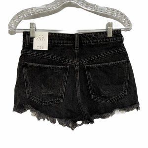 Zara Size 2 Raw Hem Black Denim Shorts NWT