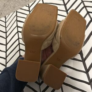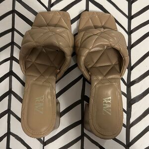 Zara Size 37 Quilted Leather Nude Square Toe Block Heel
