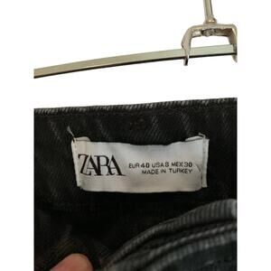 Zara Size 8 High Rise 28 Inseam Straight Leg Distressed Black Jean