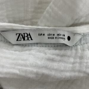 Zara Size M White Green Embroidered Cotton Gauze Mini Dress Boho Swim Cover $129