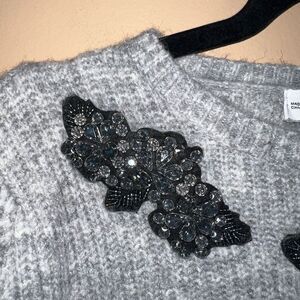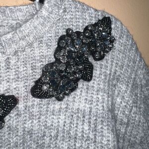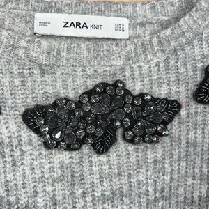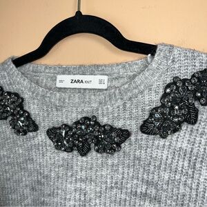Zara Size Medium Gray Alpaca Acrylic Blend Embroidered Rhinestone Sweater NWOT