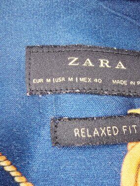 Zara Size Medium Relaxed Fit Mens Navy Floral Viscose Long Sleeve Designer Shirt