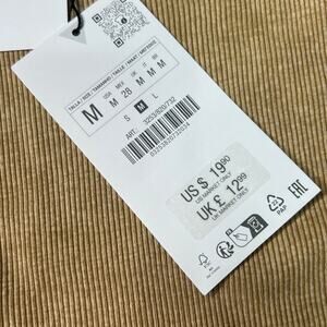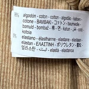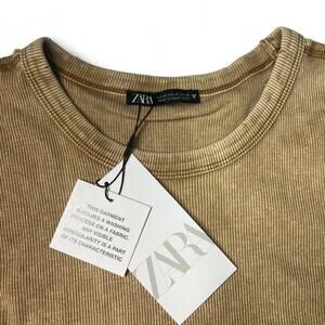 Zara Size Medium Tan Rib Knit Distressed Basic Fitted TShirt Top Cotton Stretch