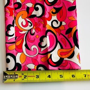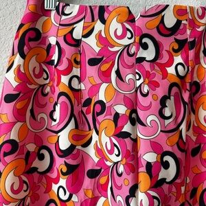 Chic cropped pants with vibrant pink and black pattern. Perfect for a bold look.