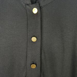 This Zara black swing dress is a stylish addition to any wardrobe. Featuring a drop waist, brass button closure, and long sleeves, it's perfect for any occasion. The dress is made from high-quality polyester material to ensure maximum comfort and durability. It comes in size S and is designed for regular size type women. The knee-length dress is perfect for any Metal-themed party or casual wear.