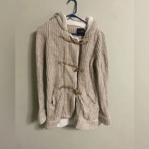 Zara Size Small Knit Fleece Hooded Long Sweater Jacket Wool Toggle Closure