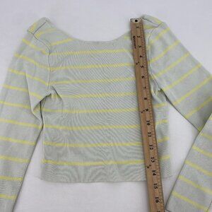 Zara Size Small striped cropped light green & yellow Ribbed Long Sleeve Top