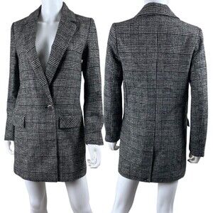 Zara Size XS Double Breasted Checked Blazer Wool Jacket Houndstooth Plaid Coat