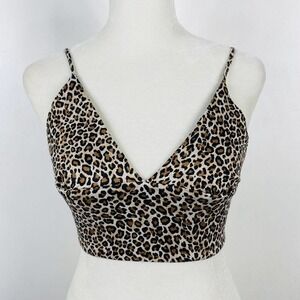 Zara Size XS Leopard Print Bralette Top Brown Tan Adjustable Straps Stretch
