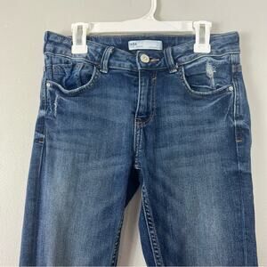 Zara Skinny Jeans Distressed Cut Off Ankle Medium Wash Blue