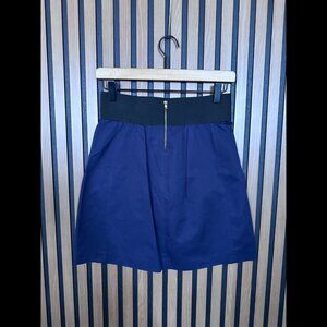 Zara Skirt Small Womens Blue Navy Pleated Golden Zip Stretch Waist 100% Cotton