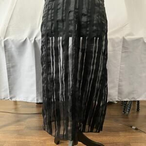 Zara Skirt Womens Medium Black Sheer Striped Maxi Semi-Formal High Waist Layered
