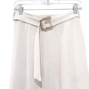 Zara Skirt Womens Medium Ivory Belted A-Line Midi Side Zip High Waist Polyester