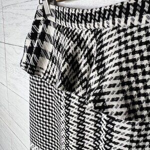 Zara Skirt Womens Size Large Black & White Tweed Plaid Ruffle Houndstooth Pencil