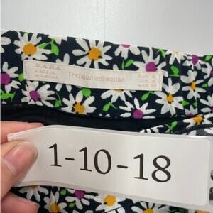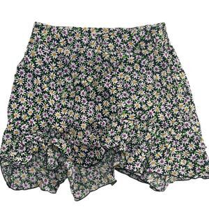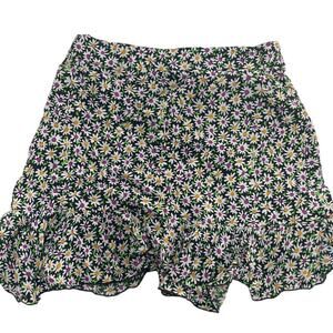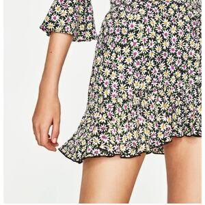 Zara Skirt Womens Small Green White Black Floral Daisy Mini Ruffled Hem