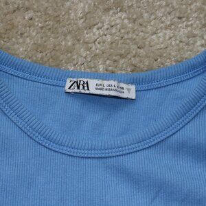 Chic Zara cropped tank top in sky blue. Sleeveless and versatile. Ideal for layering or solo wear.