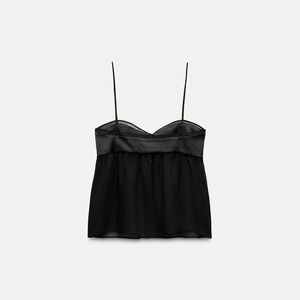 Zara Sleek Elegant Black silk Sheer Blouse Large