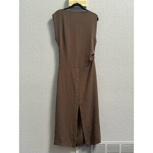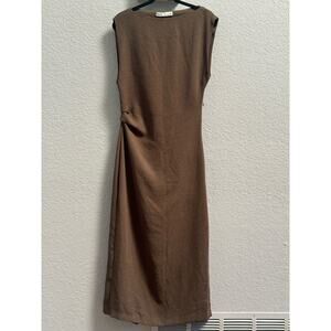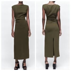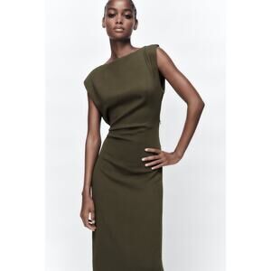 Zara Sleeveless Drapped Boat Neck Midi Dress Dark Khaki Green Size L