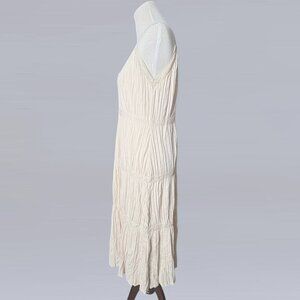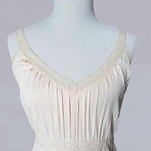Zara Midi Dress with a V-Neckline, lace straps and pleated detail. Off White/Ecru in color. Size small.