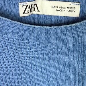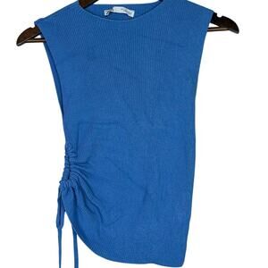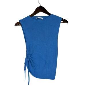 Zara Sleeveless Side Key Hole Tie Ruched Ribbed Tank Top Crop Tank Top S Blue