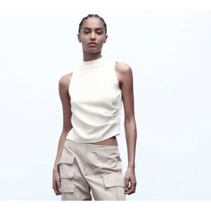 Zara Sleeveless Side Ruched Tank Top Blouse Cream White Size Extra Large