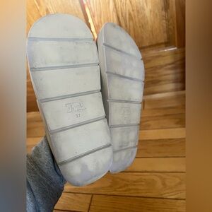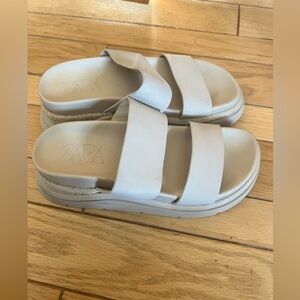 Experience the perfect blend of style and comfort with Zara's slide sandals. Featuring a minimalist design with two wide, soft straps, these sandals are ideal for casual summer outings. The cushioned footbed ensures all-day comfort, making them a must-have for your warm-weather wardrobe.
