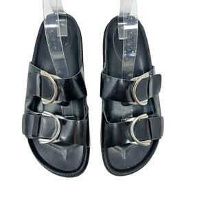 Zara Slide Sandals Buckles Double Strap Faux Leather Black Size 41 US 10
