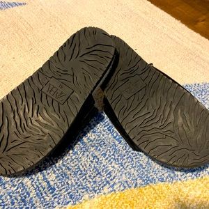 Worn once outside of the home, soles in perfect condition. Well stored and looked after. Black vegan leather upper and rope detailing on the sole, thick soles for a slightly platform look. Size 41