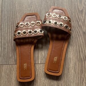 Zara Black Slides with Gold Accent | Women’s size 38 | Lightly Used