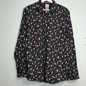 Zara Slim Fit Black Navy Floral Long Sleeve Button Down Men’s Size Large