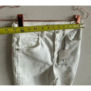 Zara Slim Flare Womens Distressed Knee Denim Jeans White Sz 4