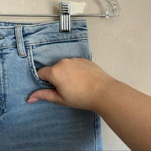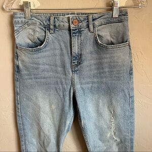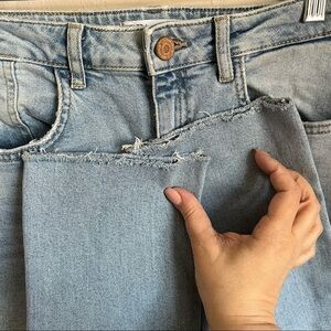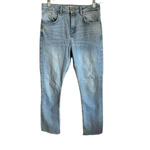 Zara Slim Straight Light Distressed Raw Hem High Rise Denim Jeans