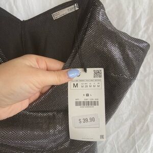 Zara Slip On Dress Party Sparkle Metal Silver New Years Size Medium NEW
