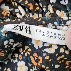 Zara black floral mini dress in size Small. Features ruffled mock neck, voluminous bell sleeves, and a flowy boho silhouette. A favorite among cottagecore bloggers, this piece is perfect for layering in cooler months or wearing solo with boots or sneakers.