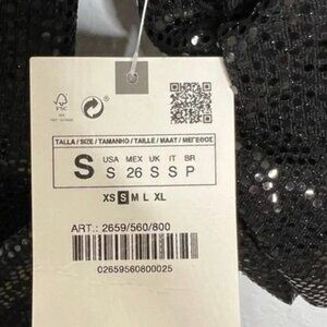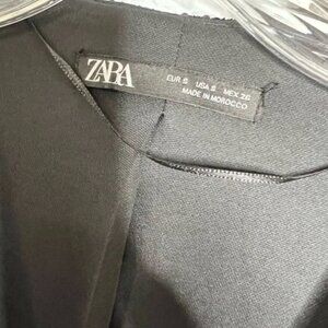 Zara women's size Small. Black, blazer/wrap minidress. With tiny sequins/sparkles, a flattering V neck; snaps for closure in the front, 3/4 sleeves and a belt.