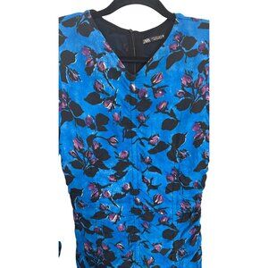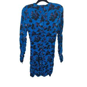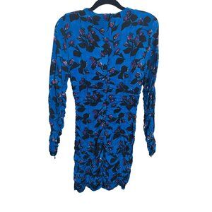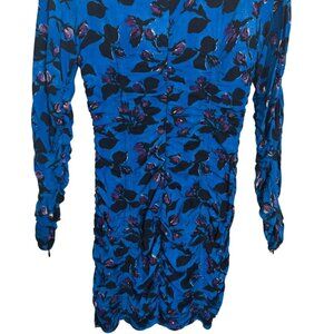 Zara Small Floral Ruched Mini Dress Long Sleeves With Zipper Blue/Black/Purple