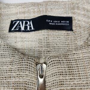 Zara women's small longline tweed jacket. Cream/ beige color way.