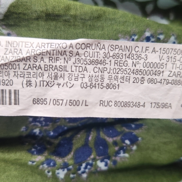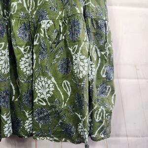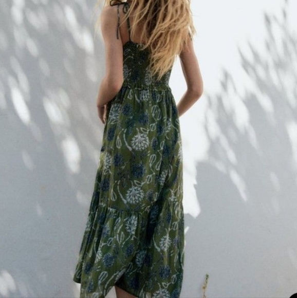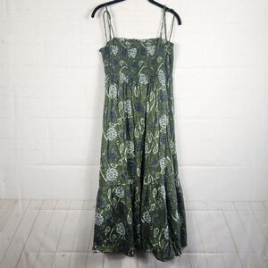 Zara Smocked Boho Lightweight Cotton Midi Tiered Floral Green Sundress Large