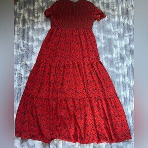 Features: Black mini floral pattern, smocked bust, short sleeves, keyhole back, lined