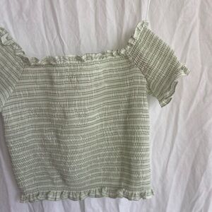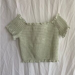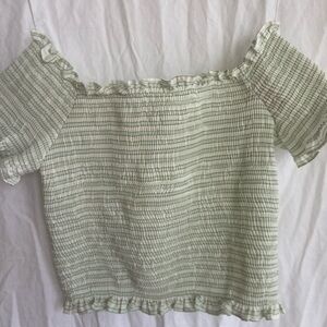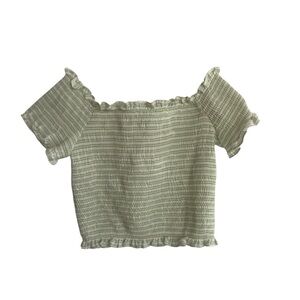 Zara Smocked Green pastel Stripe Off Shoulder Stretch Crop Top Size Medium NEW