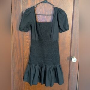 Zara Smocked Little Black Dress Puffer Sleeves Mermaid Fit Size Small