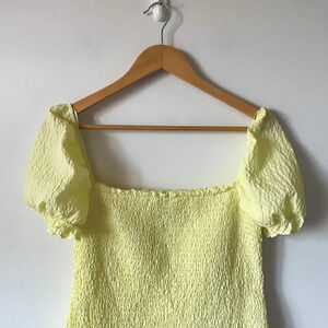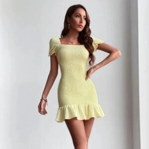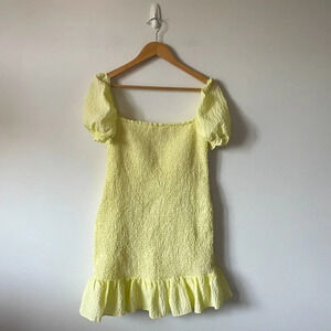 Zara Smocked Textured Ruffle Hem Mini Dress Pastel Yellow Blogger Fav Sz L