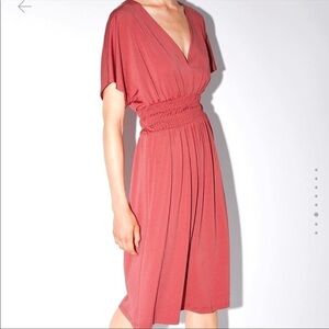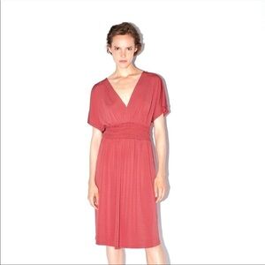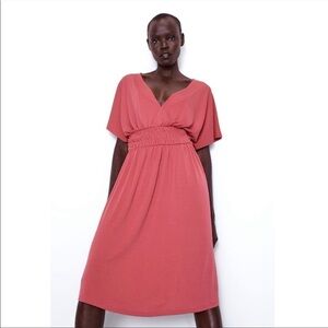 Zara Smocked V Neck with Elastic Waist Dress in Pink Size Medium