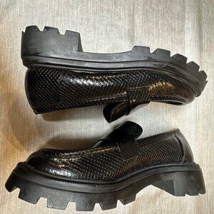 Zara Snake Faux Skin Loafers Platform Chunky Heel Black Women's Size 40 (US 9)