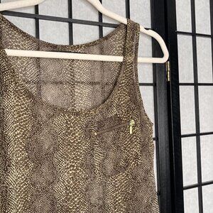 Zara Snakeskin Animal Print Sheer Sleeveless Tank Blouse Brown Medium